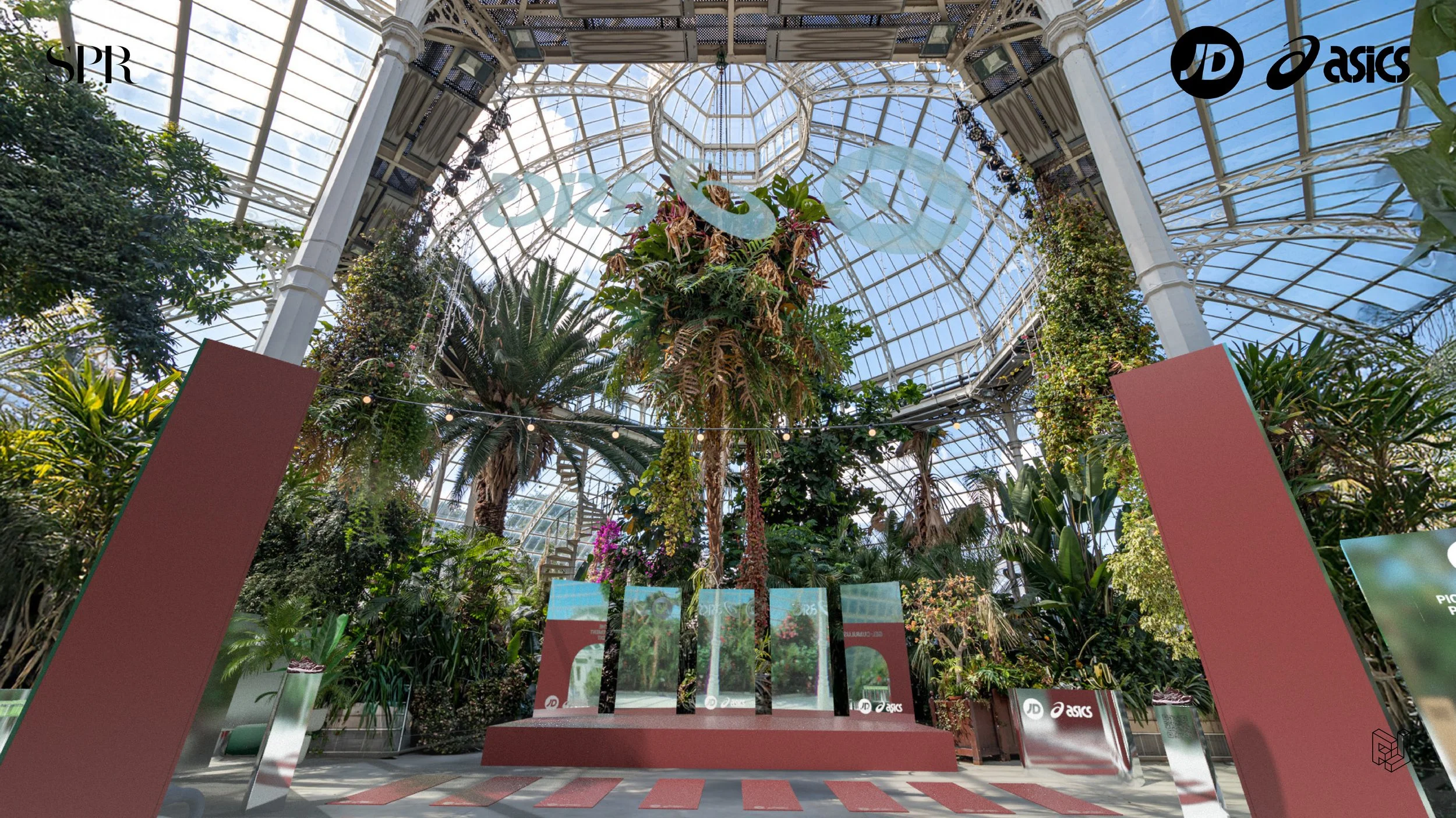 JD teamed up with Asics to host a launch event for the Asics Gel-cumulus 16 sneaker, located in the Palm house Liverpool, a wellness and music event, consisting of custom dj booth, matcha bar, product display units, plinths, tables, yoga area, photo opportunities and dividing archways, built by Deadset scenery.